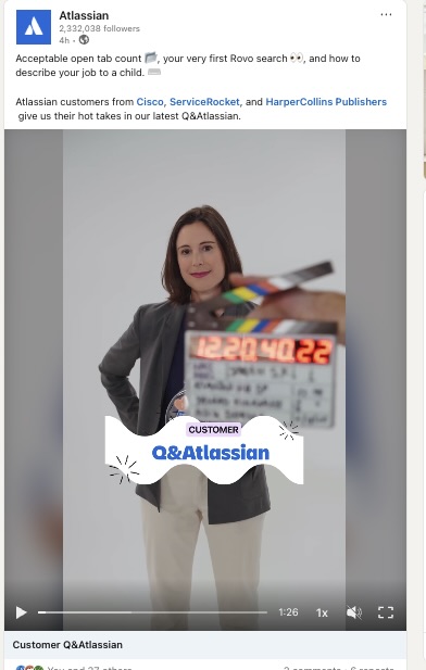 I was honored to recently join leaders from Cisco, HarperCollins Publishers, and ServiceRocket, including my colleagues, Founder and CEO Rob Castaneda and COO Colleen Blake, to give hot takes on Acceptable open tab count 📂, our very first Rovo searches 👀, and how to describe our jobs to a child ⌨️ in the latest Atlassian Q&Atlassian! Check it out